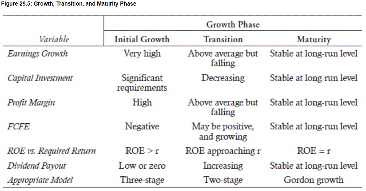 the growth rate starts out high and then declines linearly over the high-growth stage until it reaches the long-run average growth rate.