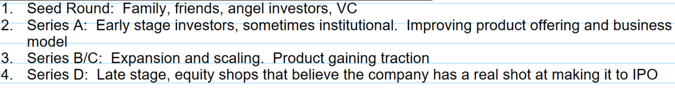 Walk me through the various funding rounds in venture capital