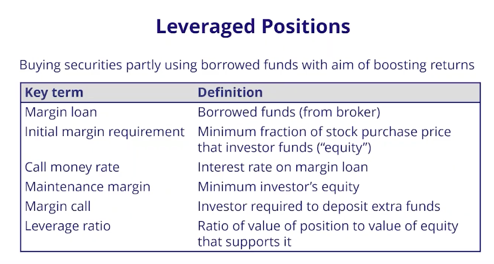 39.1 Describe the idea of ‘buying on margin’, or, a leveraged positions: