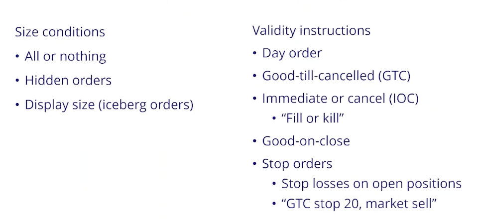 hidden orders - placing a big trade and only want some slices of it are shown to the market at a trade (these are sometimes called iceberg orders)
