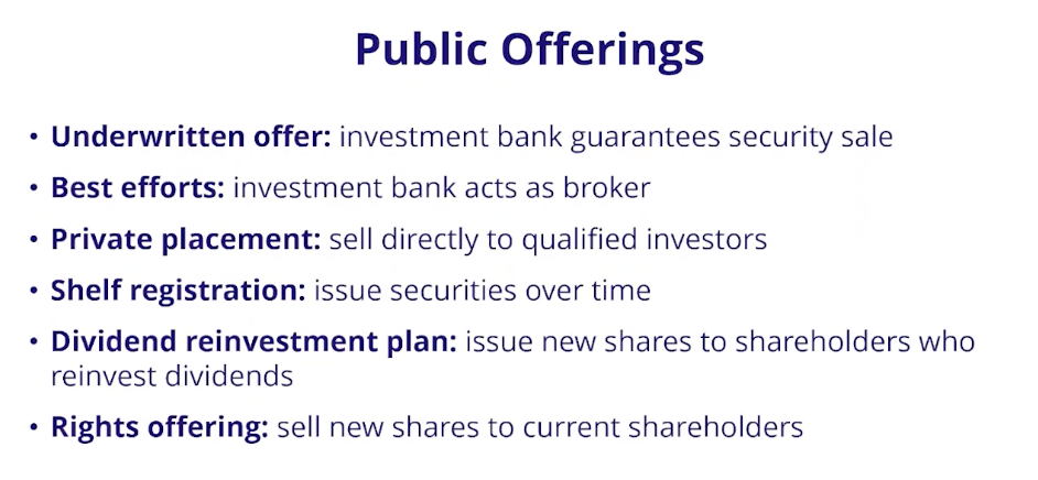underwritten offer - the IB buys up any shares that the market doesn’t want to have