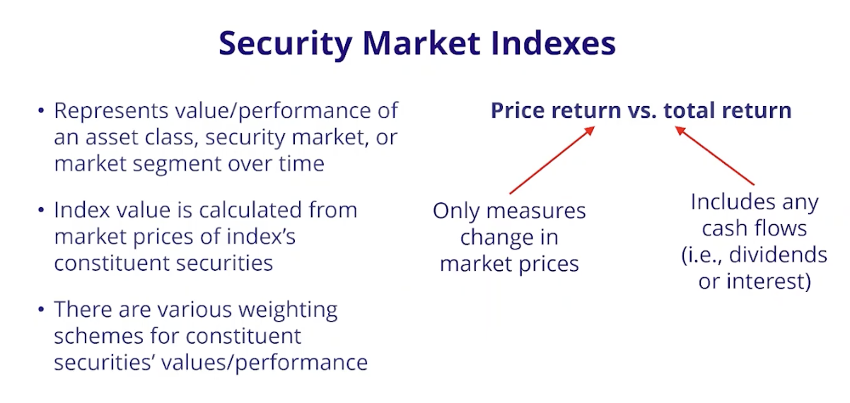 total return = takes cash flows from dividends etc or interest - so the overall value of the investment