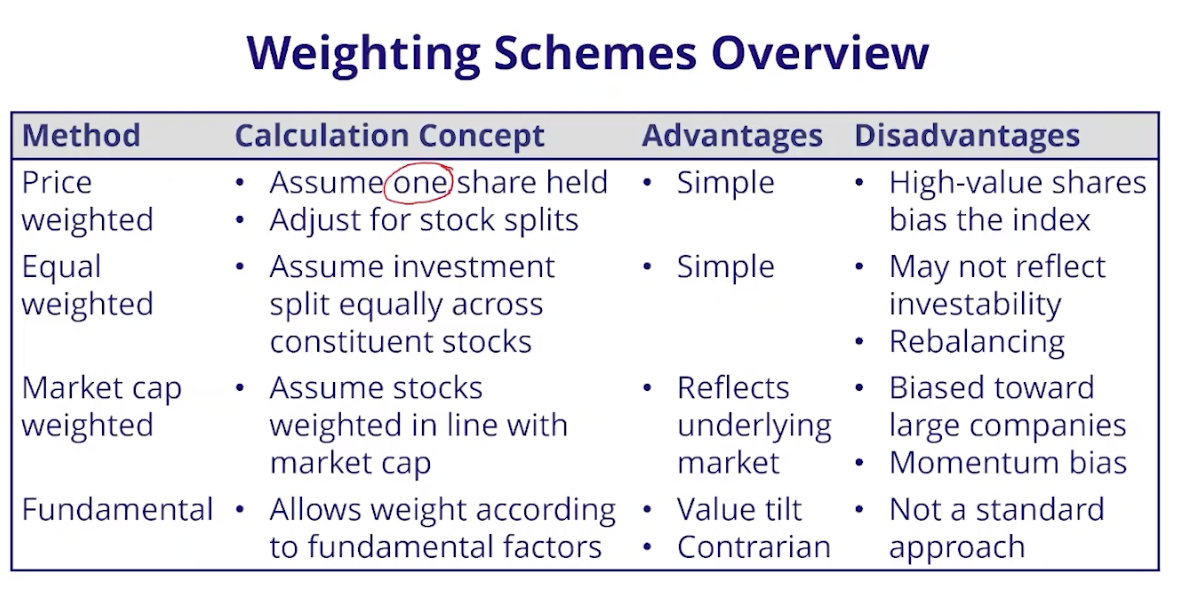 40.1 describe an overview of different weighting schemes that can be found within indexes: