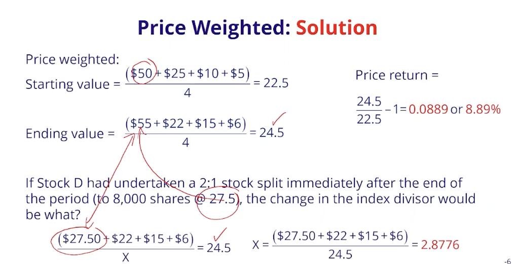 40.1 Describe the process of working out the price return of a price-weighted index: