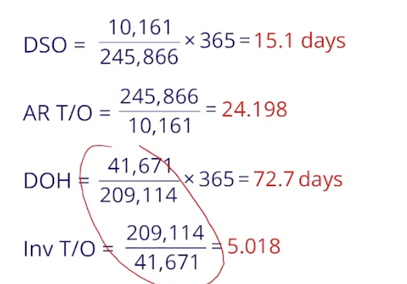45.1 How can we take the number of days for DSO, DOH for example, and turn it into a turnover figure? (to understand how many times the inventory, for example, is turned over during the year)