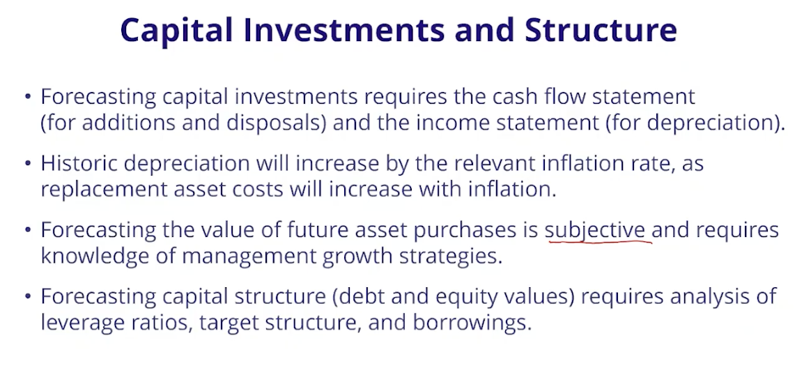 45.1 How can we forecast capital investments, depreciation, the value of future asset purchases, and capital structure?