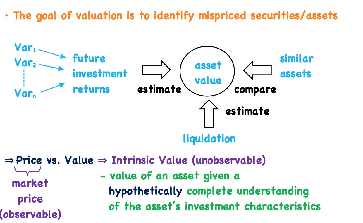 What is the goal of valuation and explain the difference between price and value