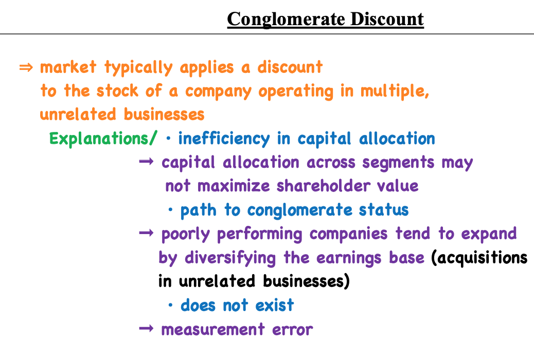 What is a conglomerate discount and why may it be applied?