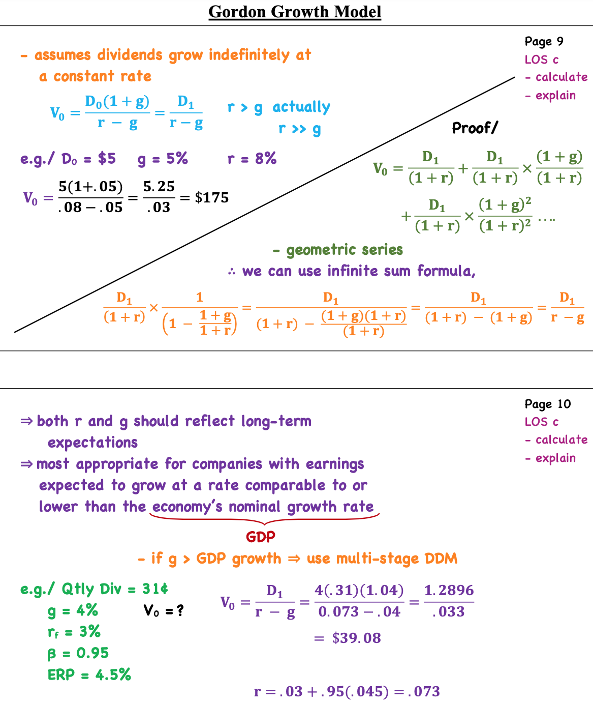 What does the gordon growth model assume, what should r and g reflect and what companies is it most suitable for?