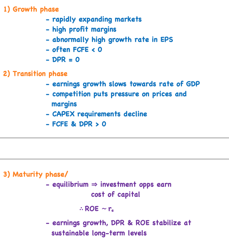 What are the three stages of growth and their properties?