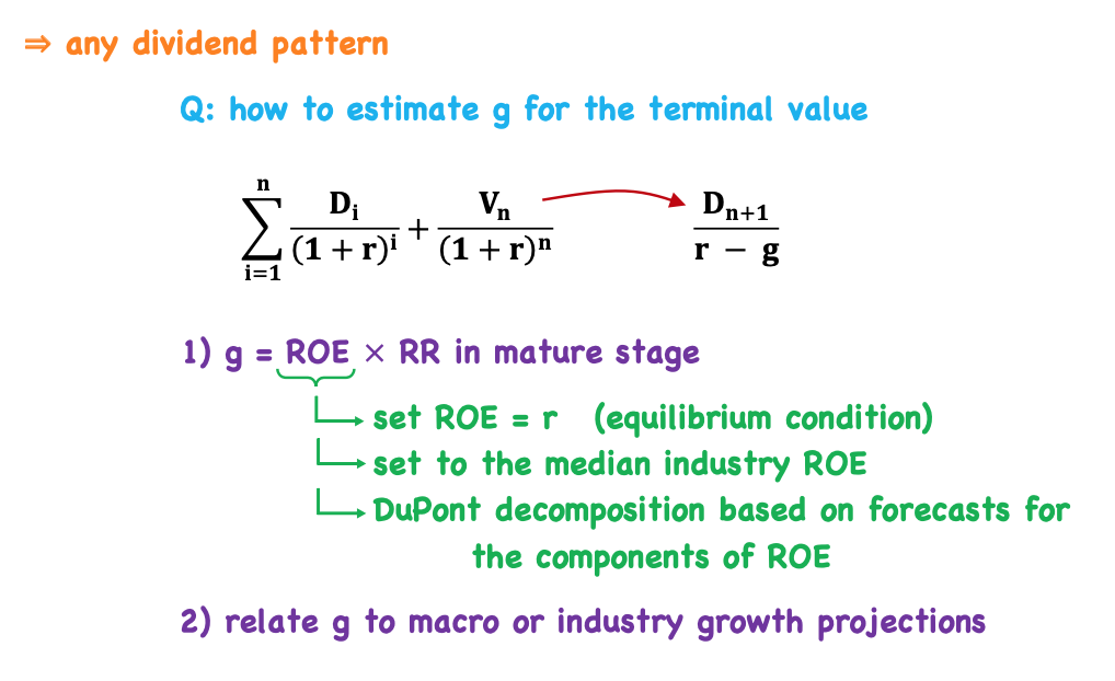 What are the two methods of estimating g for the terminal value?