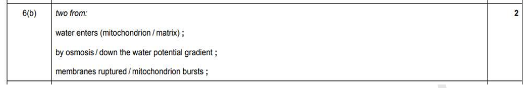 Q. Explain the consequences to a mitochondrion if the water potential of the liquid in