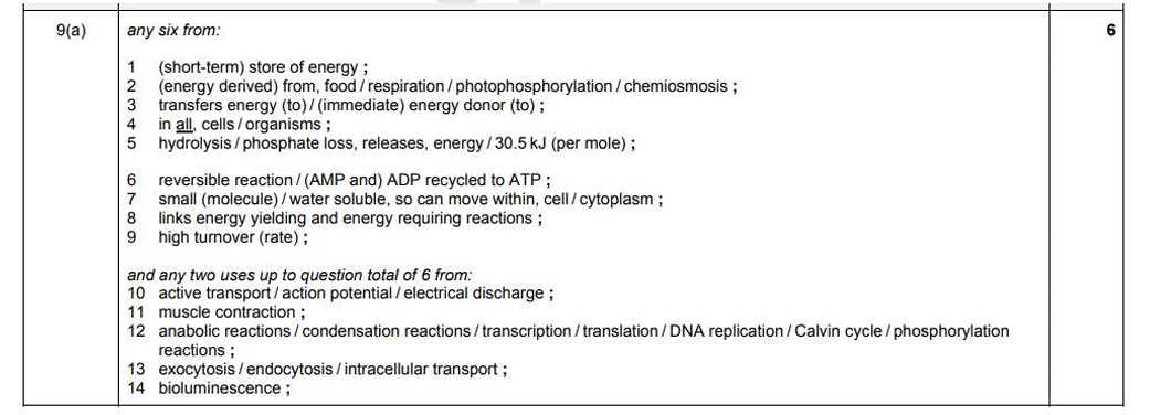 Q. (a) Describe the features of ATP that make it suitable as universal energy