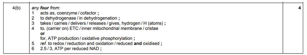 Q. Outline the role of NAD in respiration in aerobic conditions. (4)