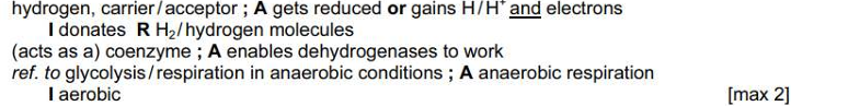 Q. Outline the roles of NAD in the cytoplasm of a cell. [2 marks]