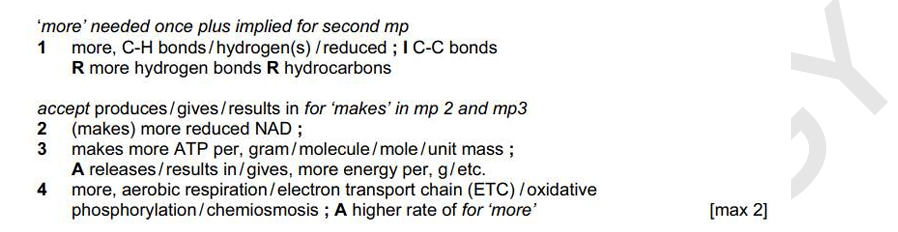 Q. Explain why lipids have higher energy value than carbohydrates. [3 marks]