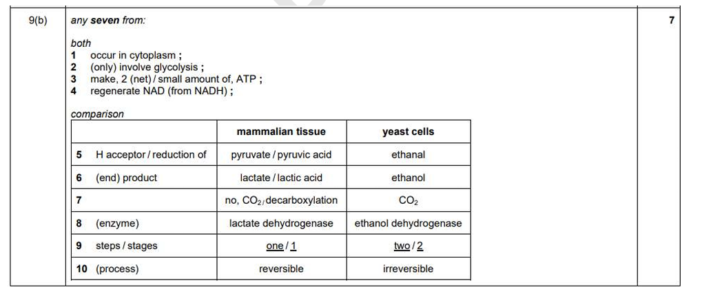 Q. Compare respiration in anaerobic conditions in mammalian tissues and yeast