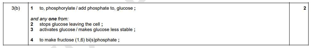 Q. The first part of glycolysis uses ATP. Explain why it is needed. (2)