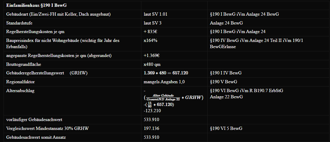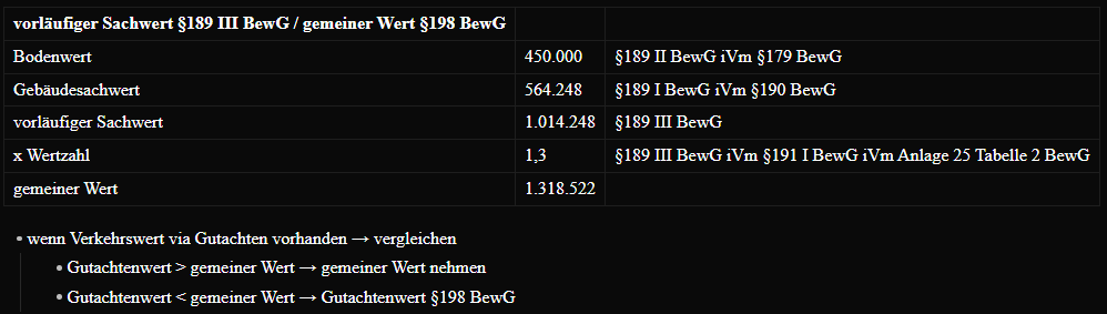 • allg. §157 I+III BewG: Wertermittlung unter Anwendung §159 & 176-198 BewG zu ermitteln