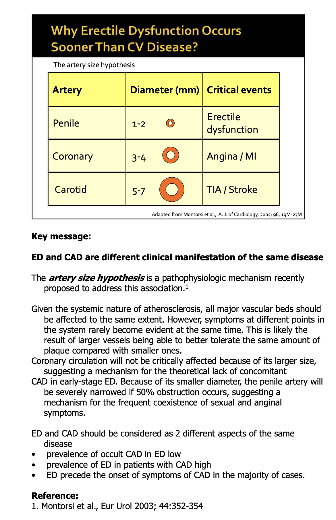 because the penile arteries are easier occluded than an entire coronary artery.– the ARTERY SIZE HYPOTHESIS.