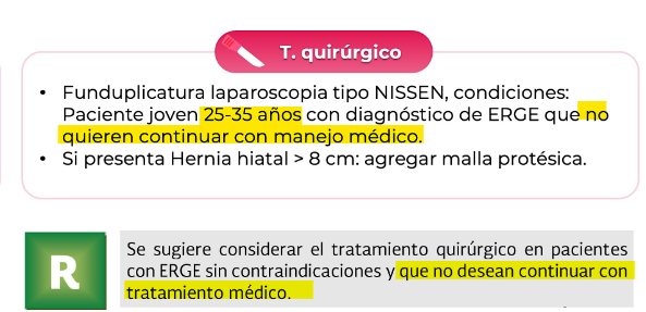 ¿ En qué pacientes está indicado realizar cirugía en ERGE ?