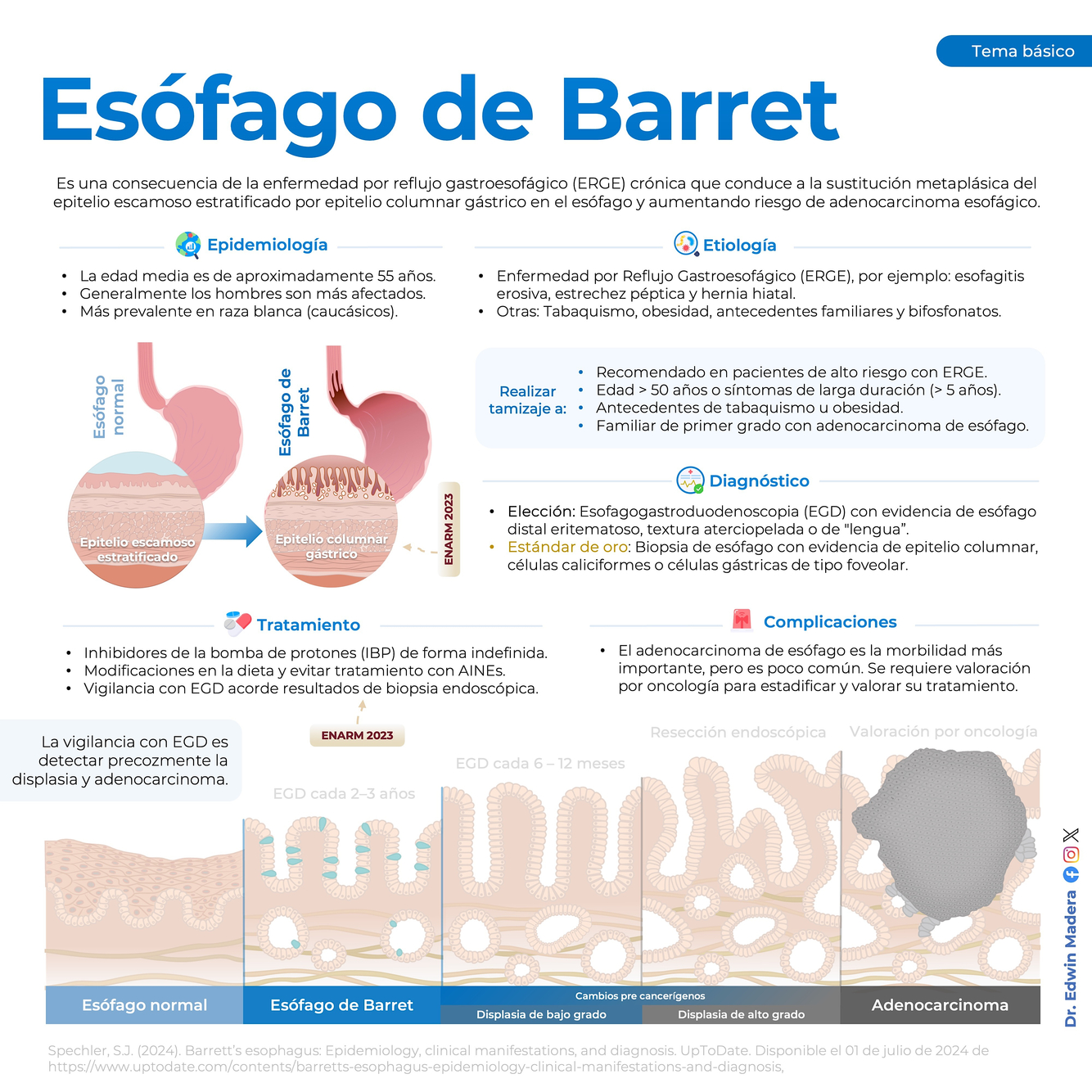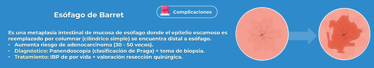 Esófago de Barret ; se presenta en el 10% de los pacientes con ERGE