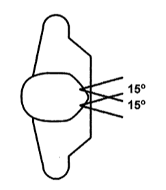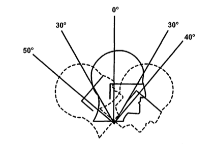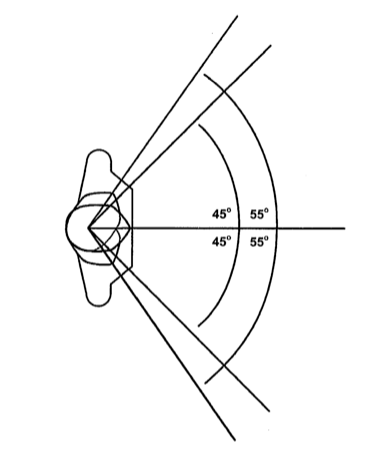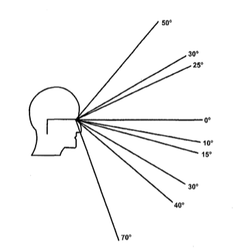 30° below the standard line of sight, and the maximum eye rotation is at 25° above the standard line of sight.