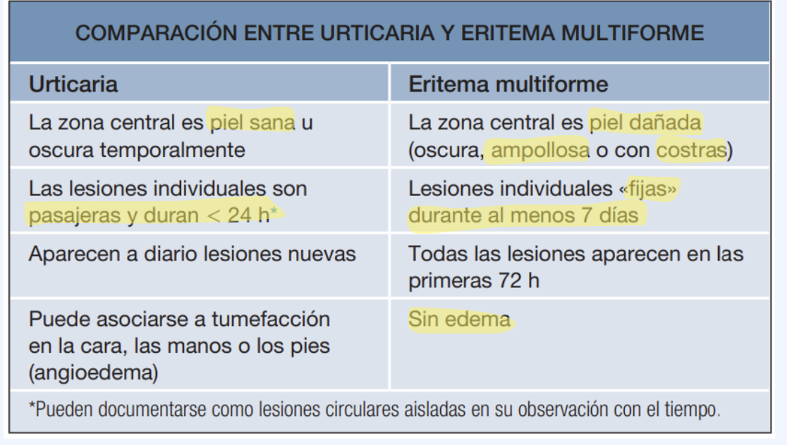 Diferencias entre urticaria y EM