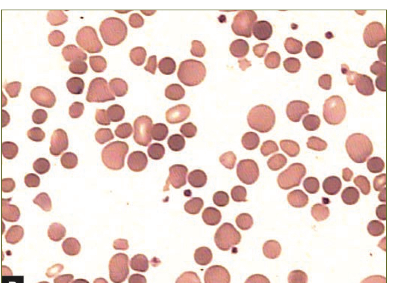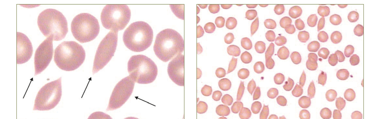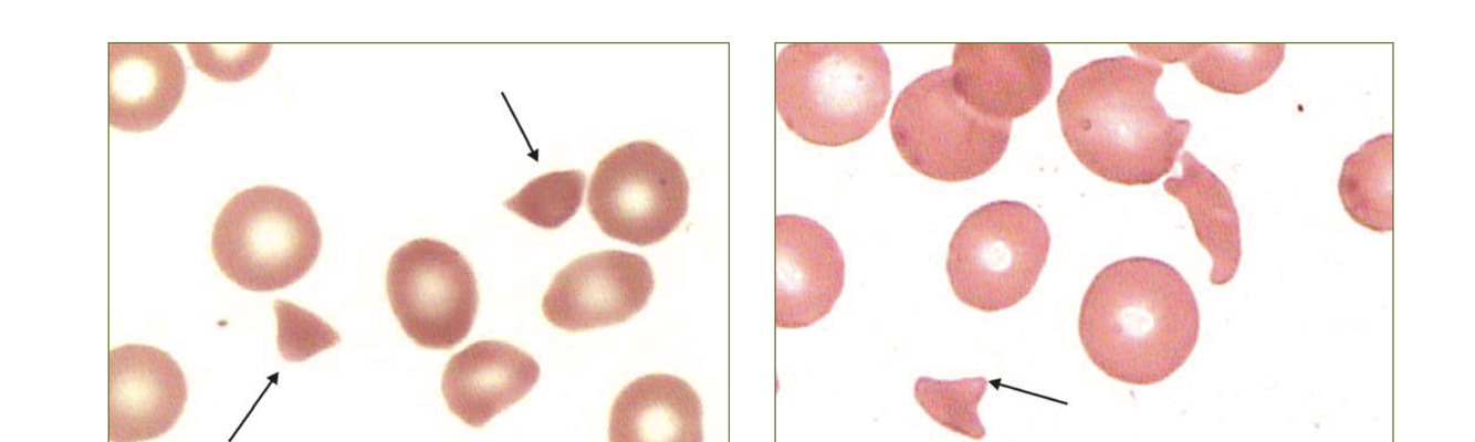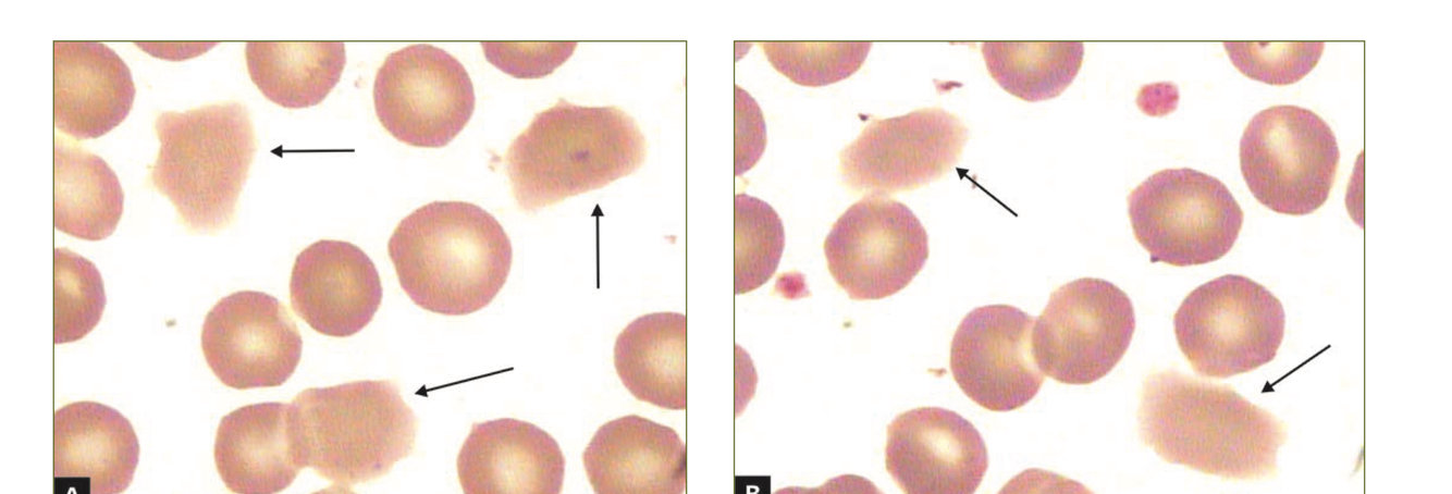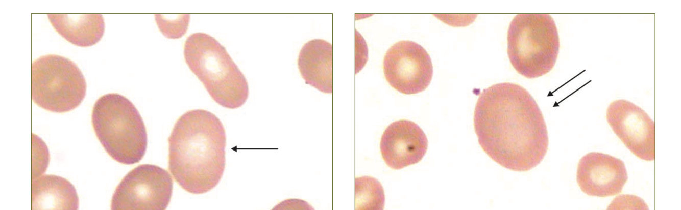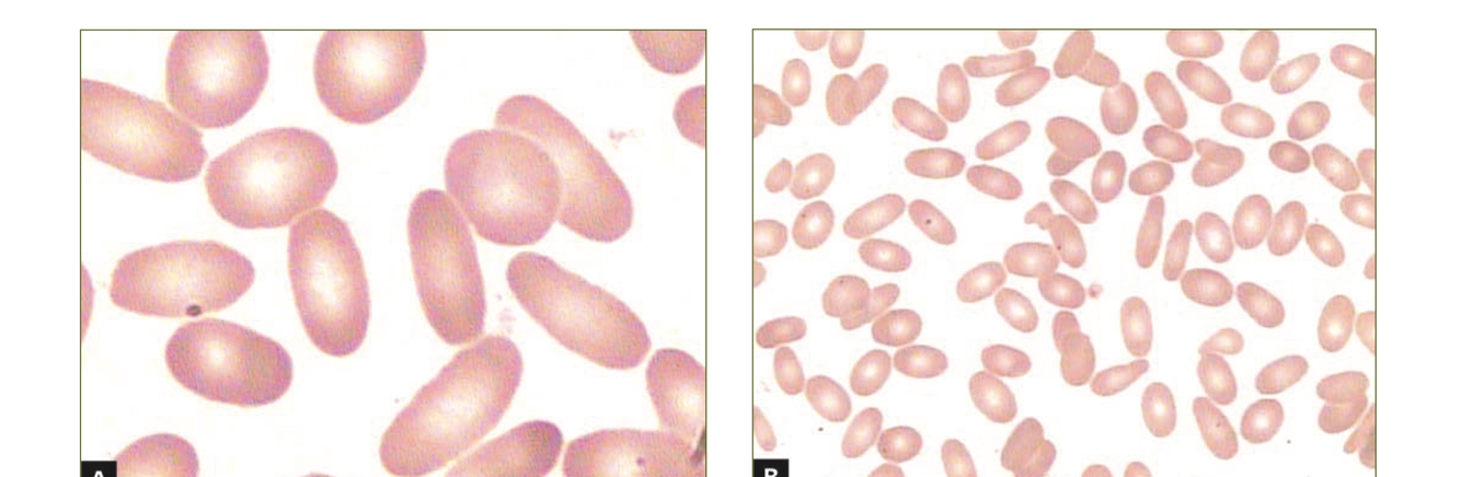 A existência de um grande número de eliptócitos no SP sugere uma anormalidade genética chamada de “eliptocitose hereditária” (25-90% de eliptócitos)