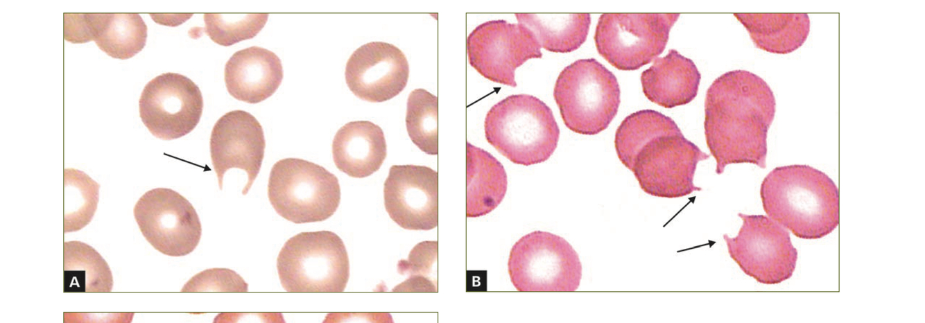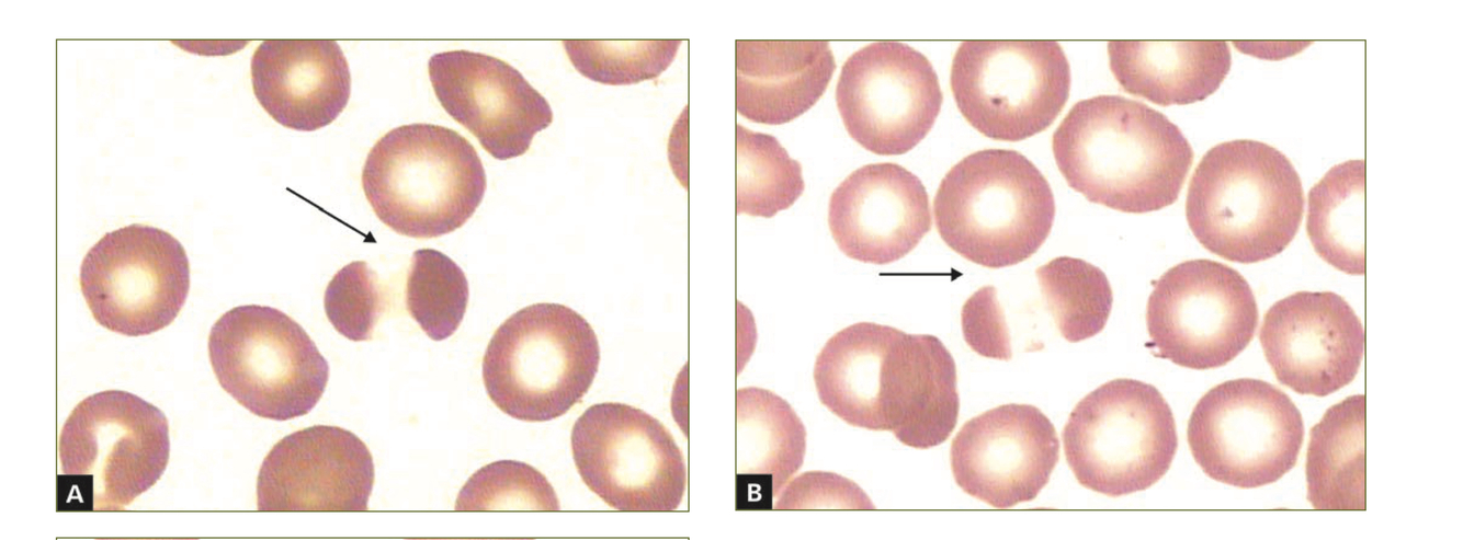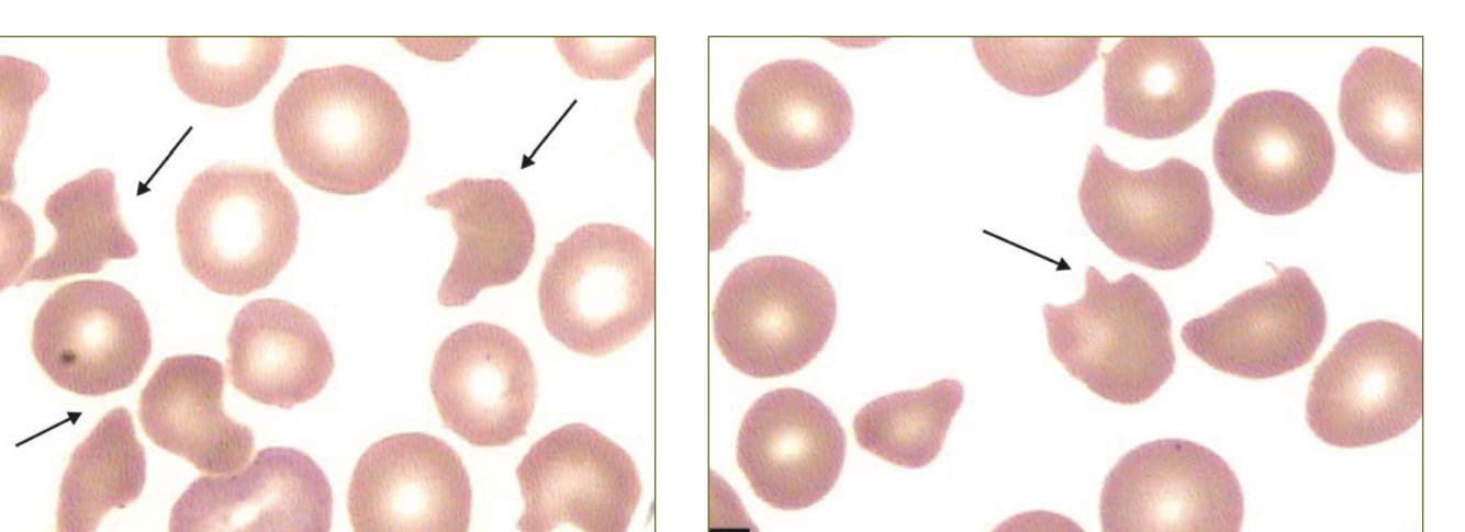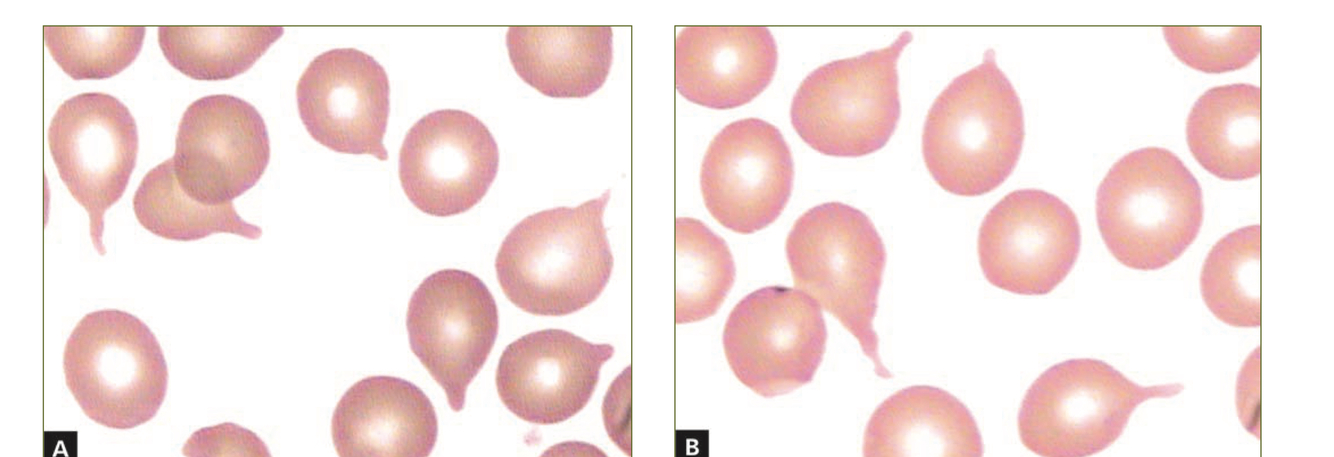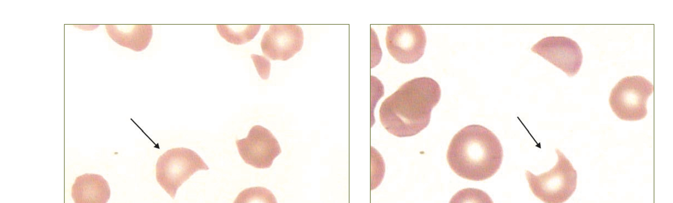 A existência de um grande número de eliptócitos no SP sugere uma anormalidade genética chamada de “eliptocitose hereditária” (25-90% de eliptócitos)