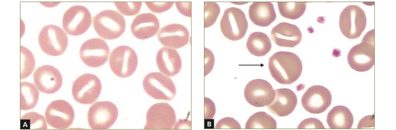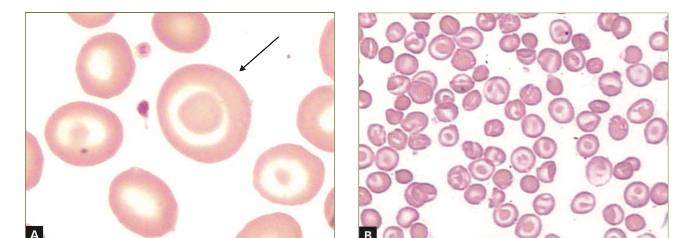 Na hematoscopia, observa-se um aumento do halo central da hemácia. Também conhecida como “hemácia fantasma”