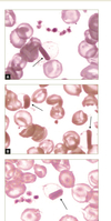 Eliptócitos em número < 10% são vistos em algumas talassemias, anemias megaloblásticas e anormalidades enzimáticas herdadas, além de aparecer em pacientes com hepatite C e deficiencia de ferro