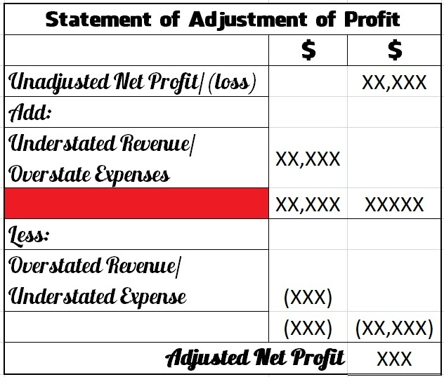 Statement of Adjustment of Profit