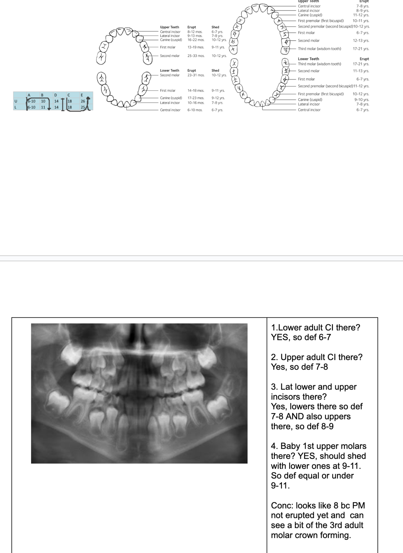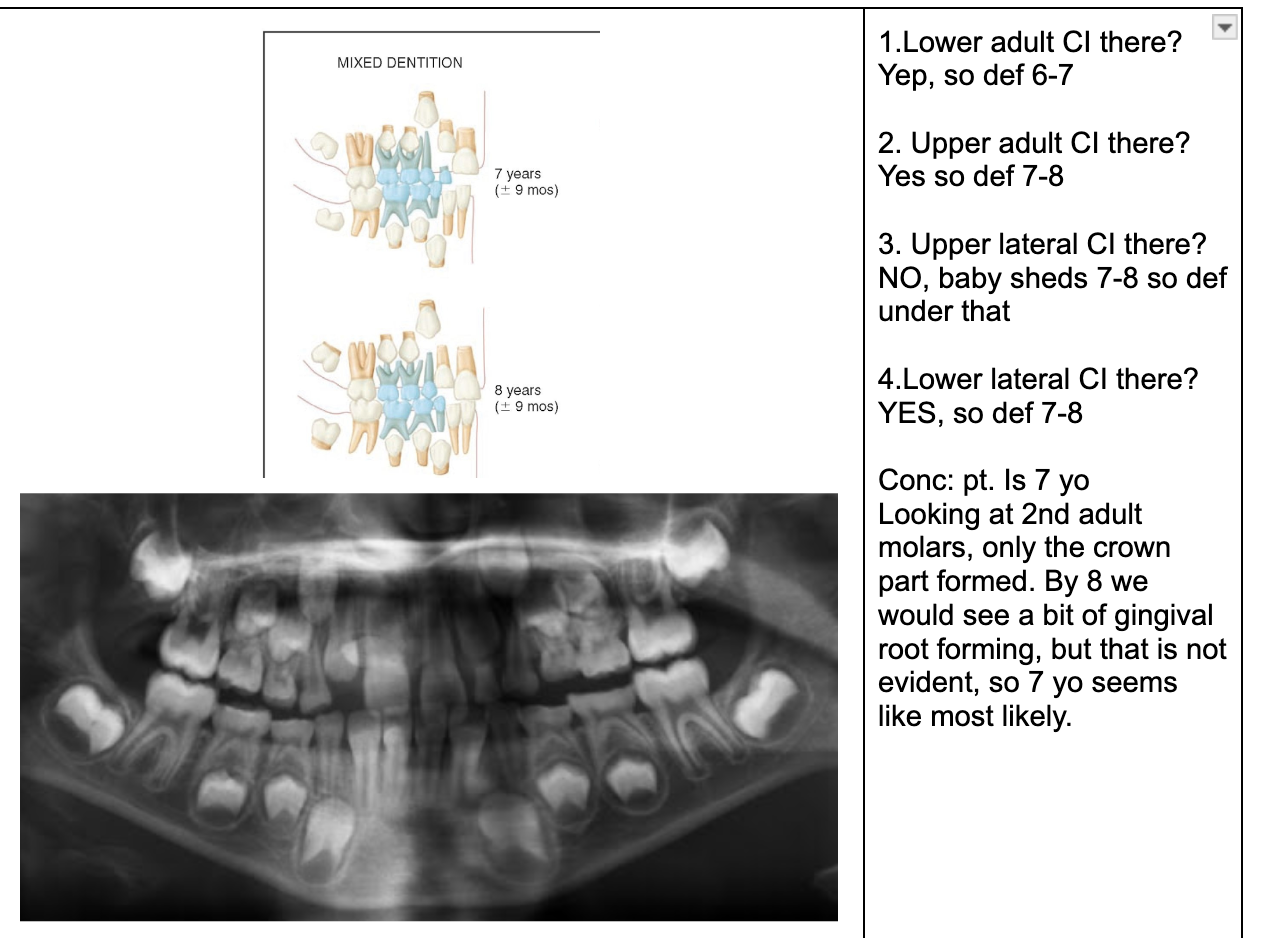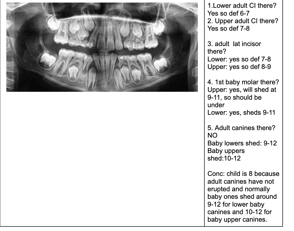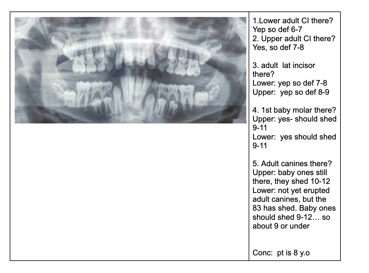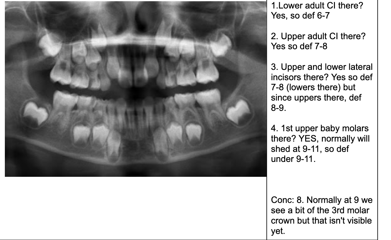 NOTE- THE 8’s - crown starts developing at 9 yo.