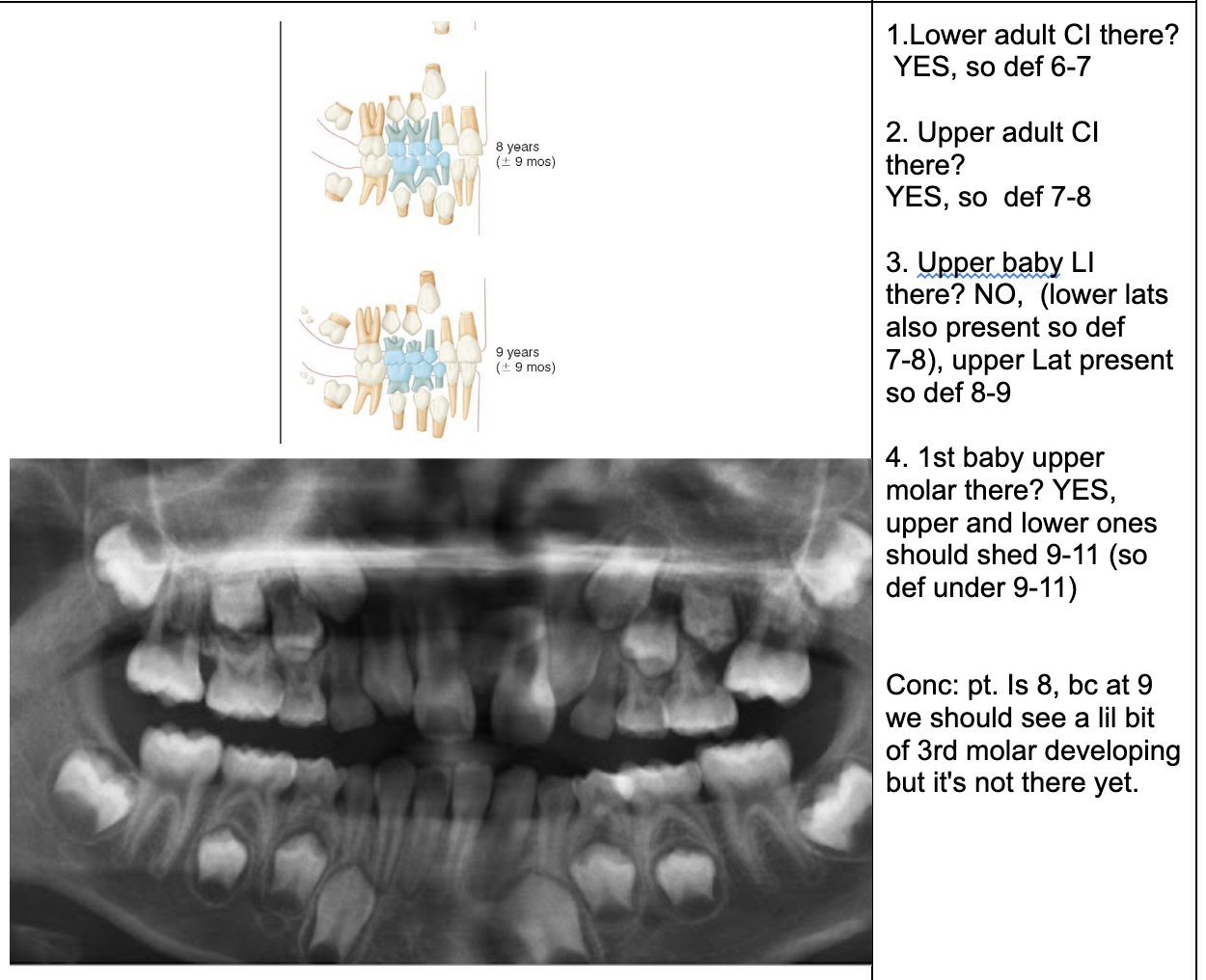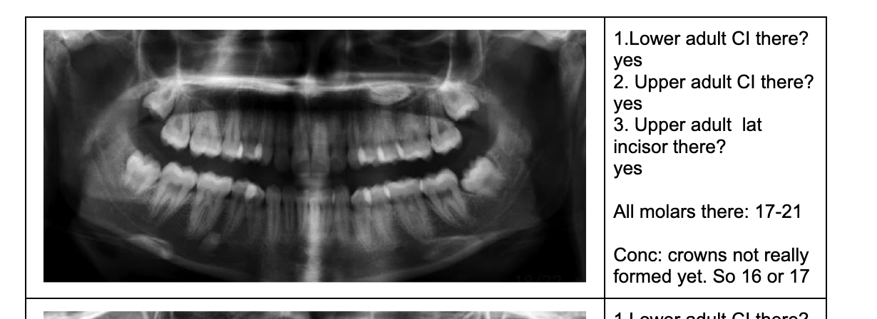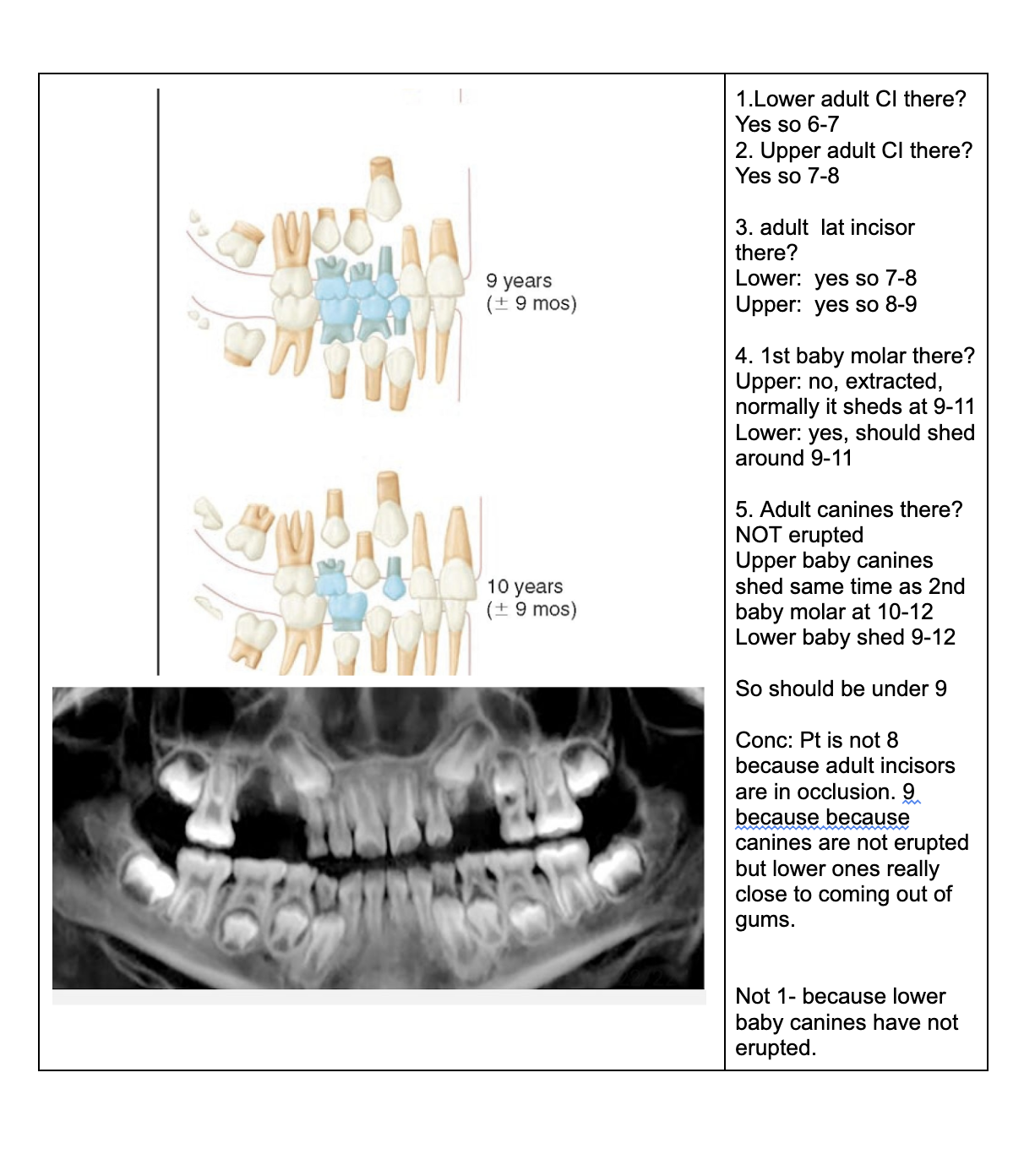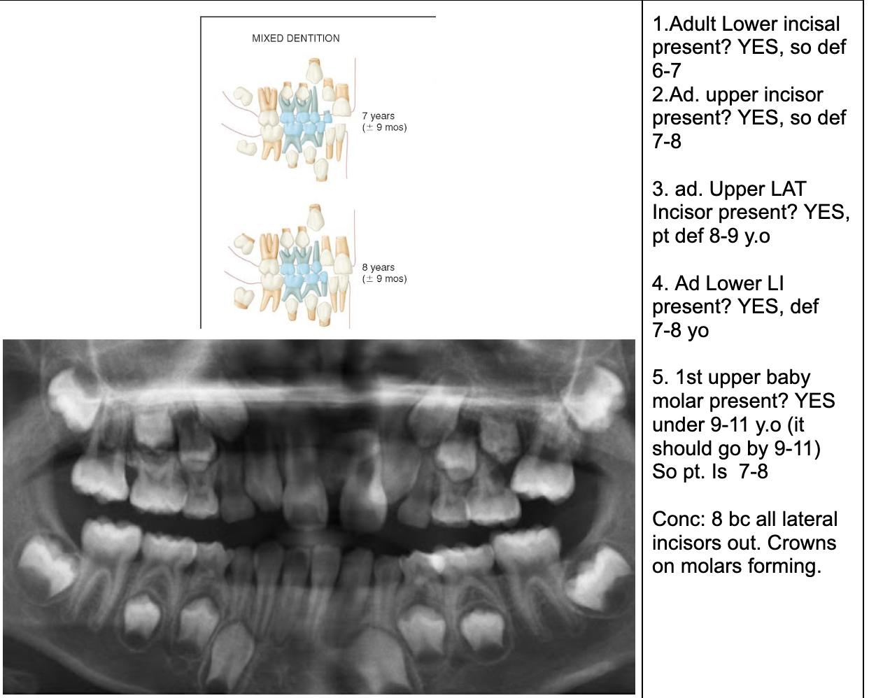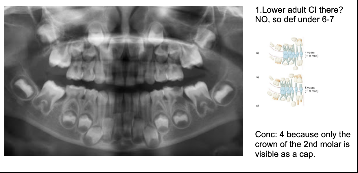 NOTE- THE 8’s - crown starts developing at 9 yo.