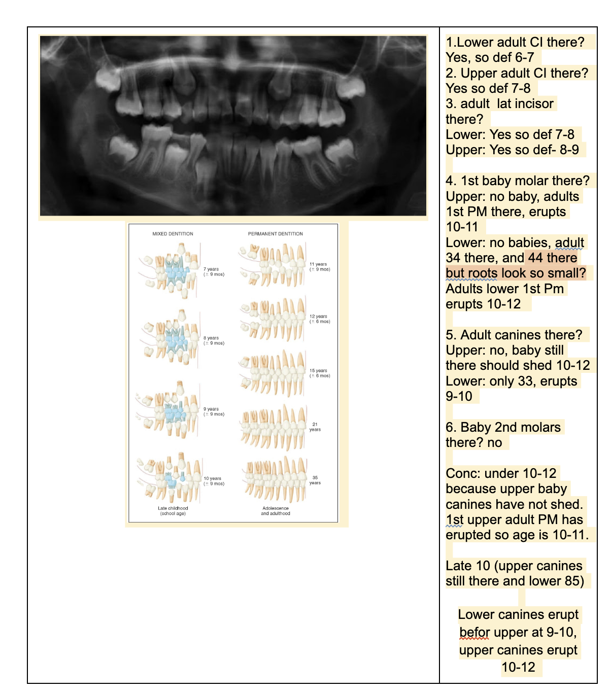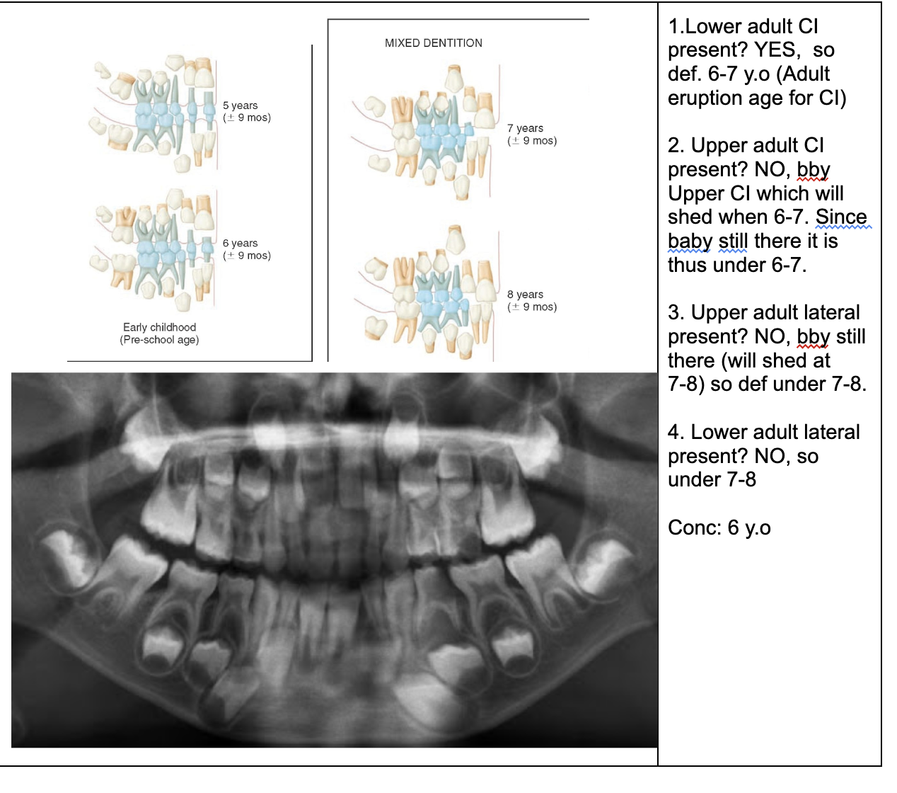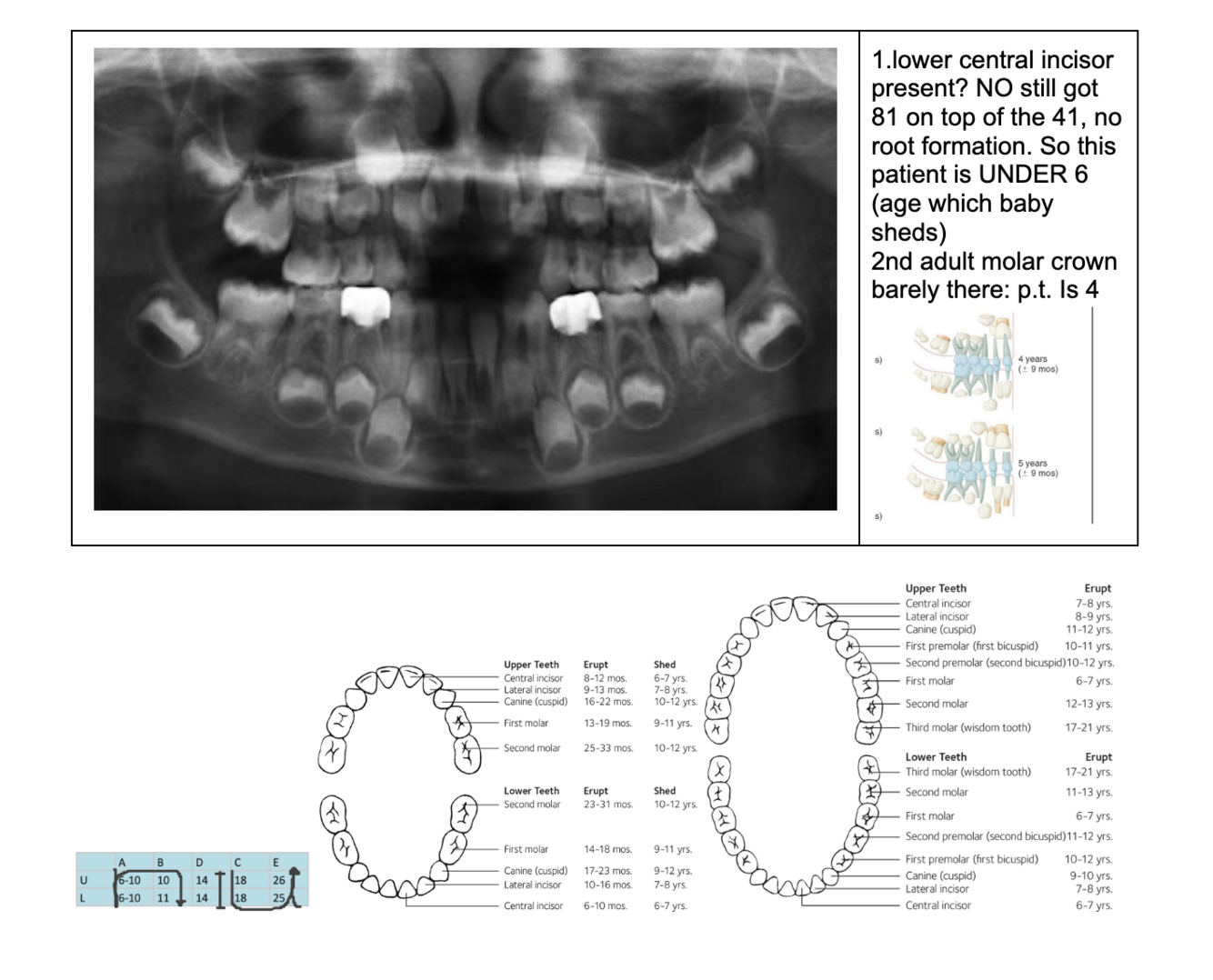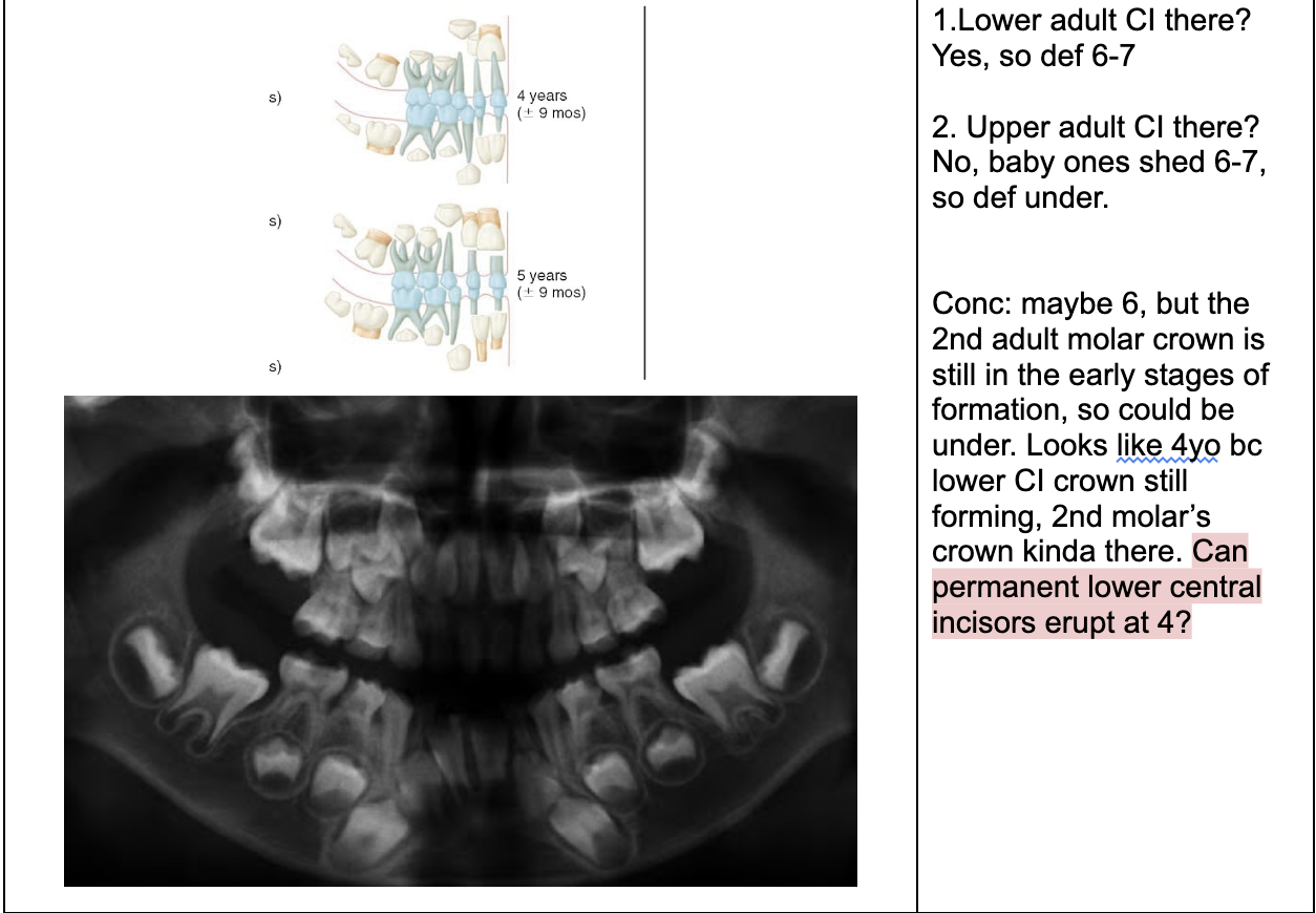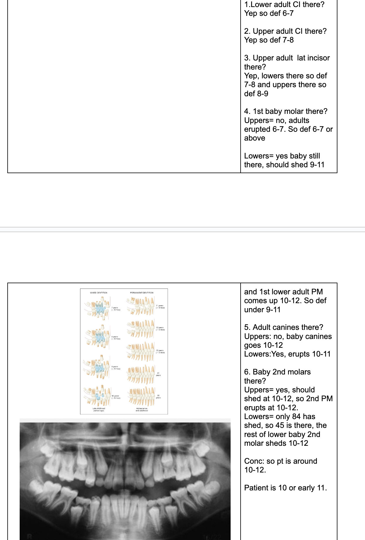 NOTE- THE 8’s - crown starts developing at 9 yo.