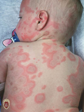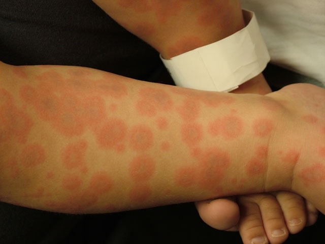 They will usually have an URTI then start to develop a rash within 3 days. The rash will spread from the extremities to the trunk.