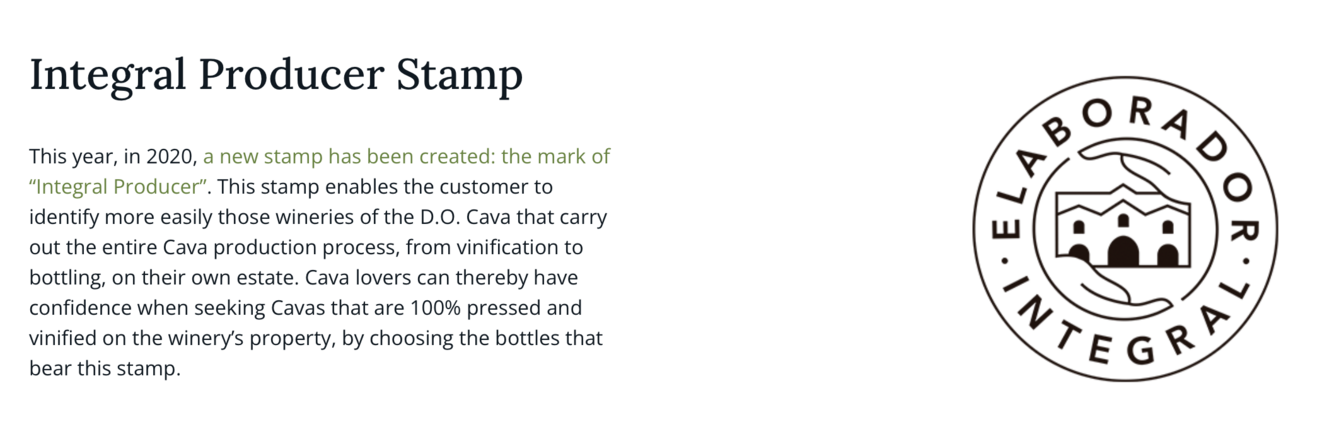 Cava DO - stamp to indicate producers who complete the entire process on estate, from vine to bottle