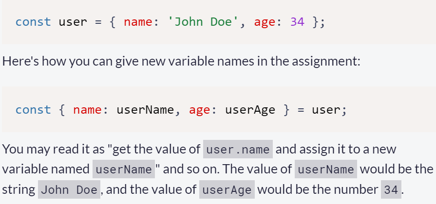 How do you rename object variables while distructuring?