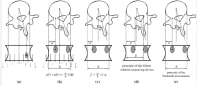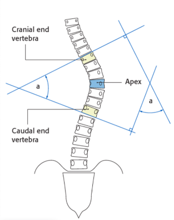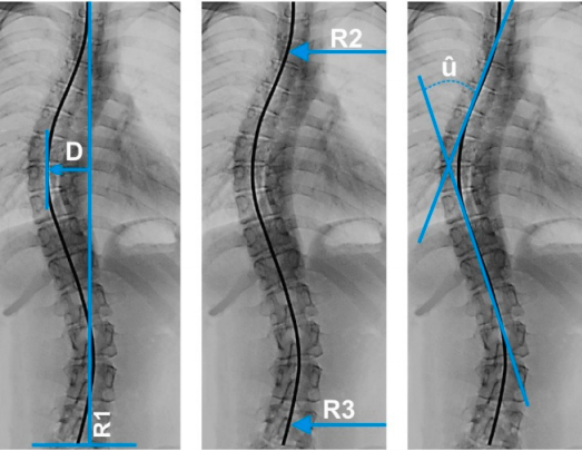 Os métodos de avaliação radiológica da escoliose incluem radiografias em pé e com inclinação lateral para medir a magnitude da curva.