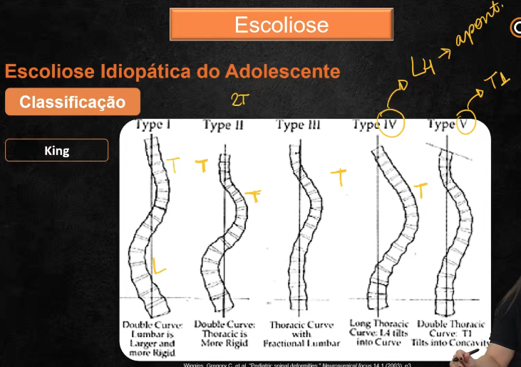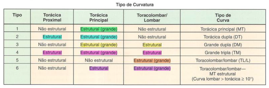 * Nos três primeiros tipos, a curva torácica principal é estruturada.