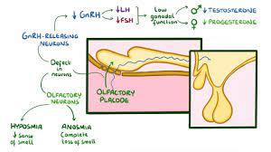 delayed or absent puberty (hypogonadism low FSH and LH)