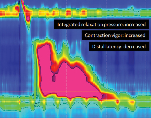 On physical examination, the patient points to the sternal notch where she feels the food is getting stuck, otherwise the examination was unremarkable. She was treated with several proton pump inhibitors with no improvement in her dysphagia. A high-resolution esophageal manometry was performed [FIGURE]. What is the diagnosis?
