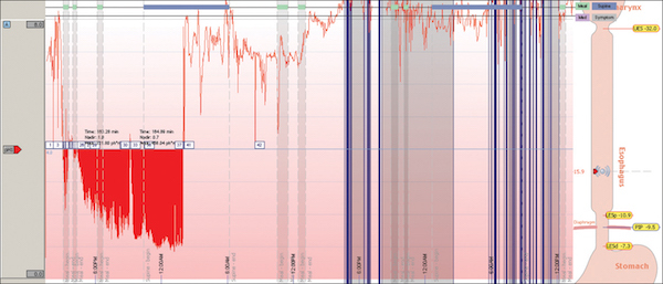 Total time with pH <4 = 29.2% (normal: <5.5%)
