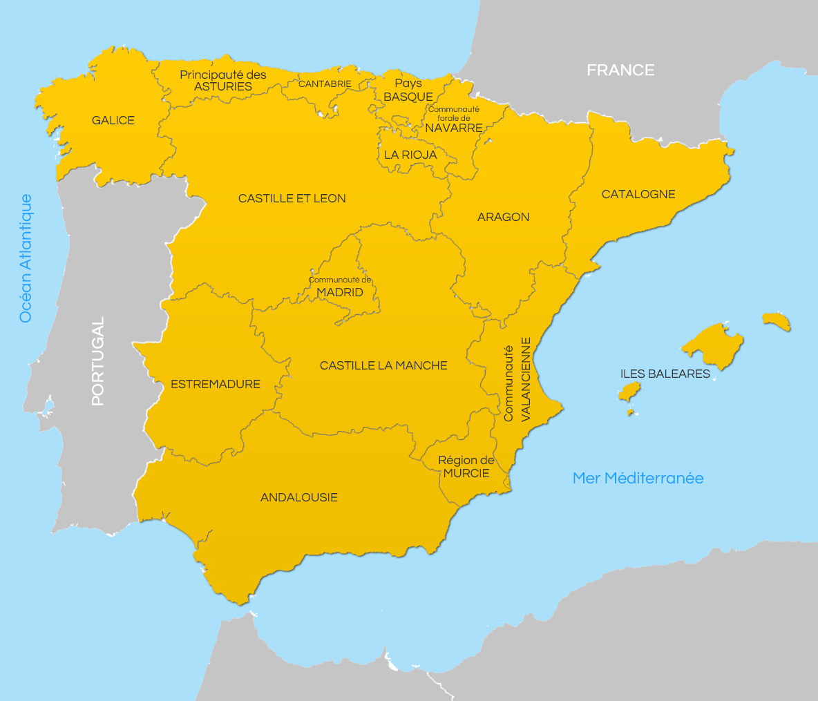 Les pays voisins de l’Espagne sont la France et le Portugal.