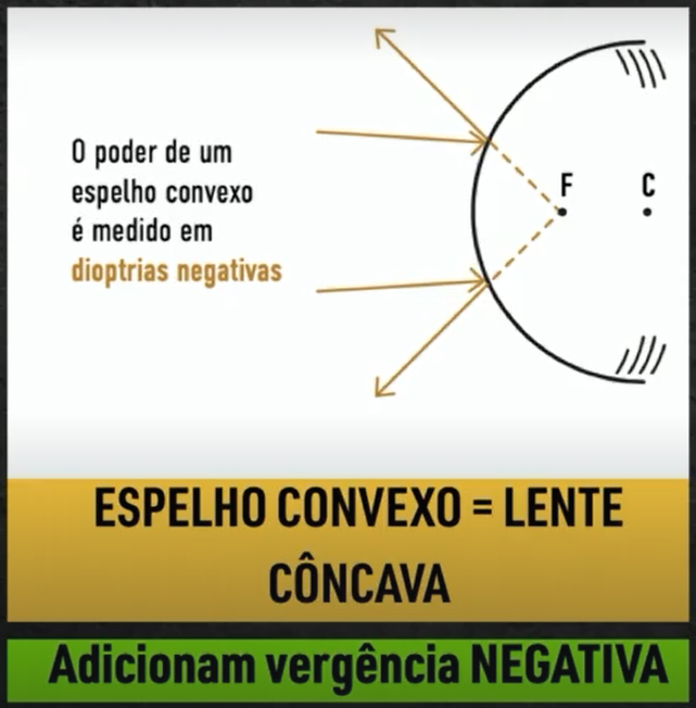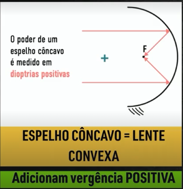 O espelho côncavo se assemelha as lentes _____(convexas/côncavas), adicionando vergência _____(positiva/negativa).