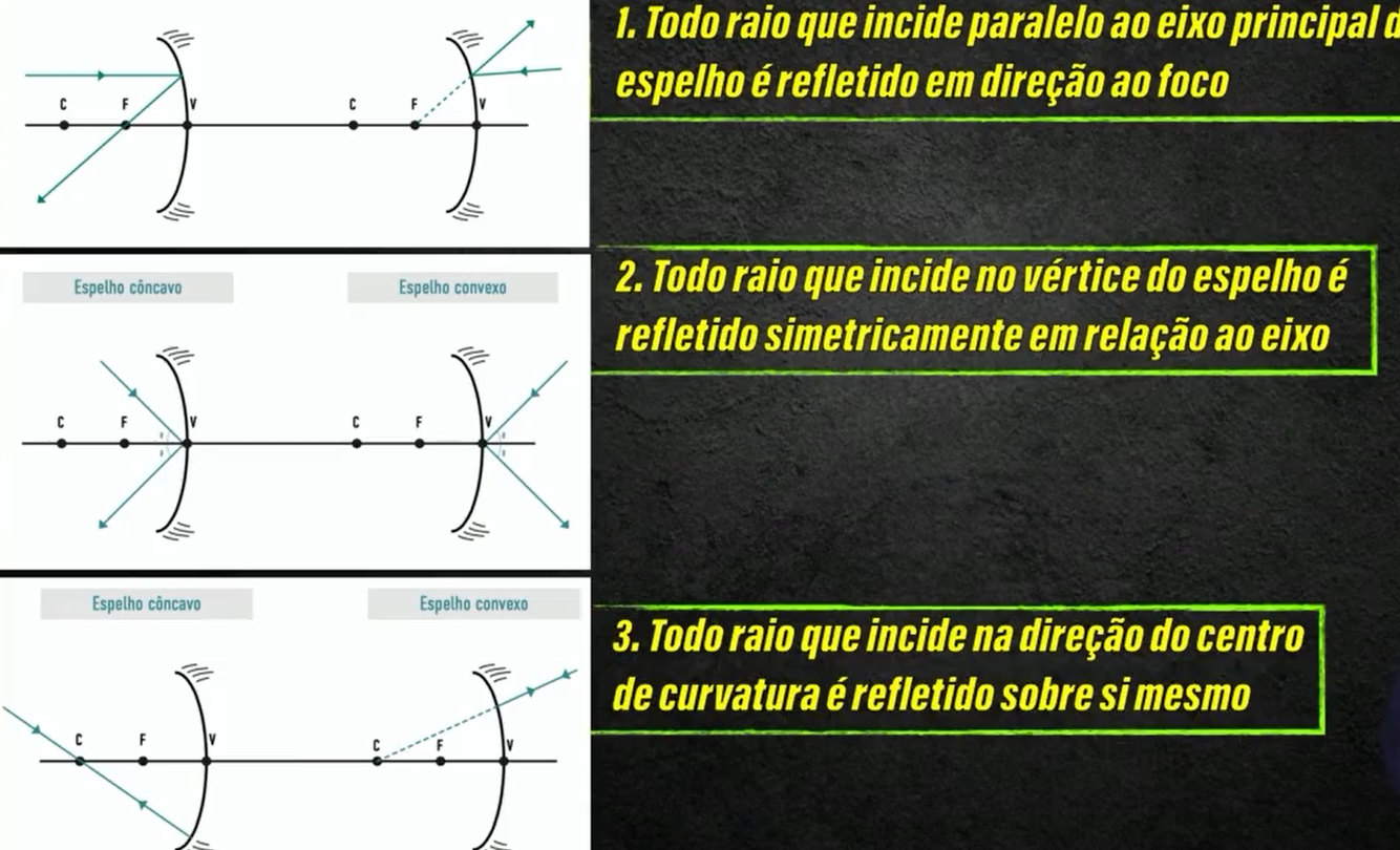 De acordo com as leis dos espelhos esféricos todo raio que incide paralelo ao eixo principal do espelho é refletido..