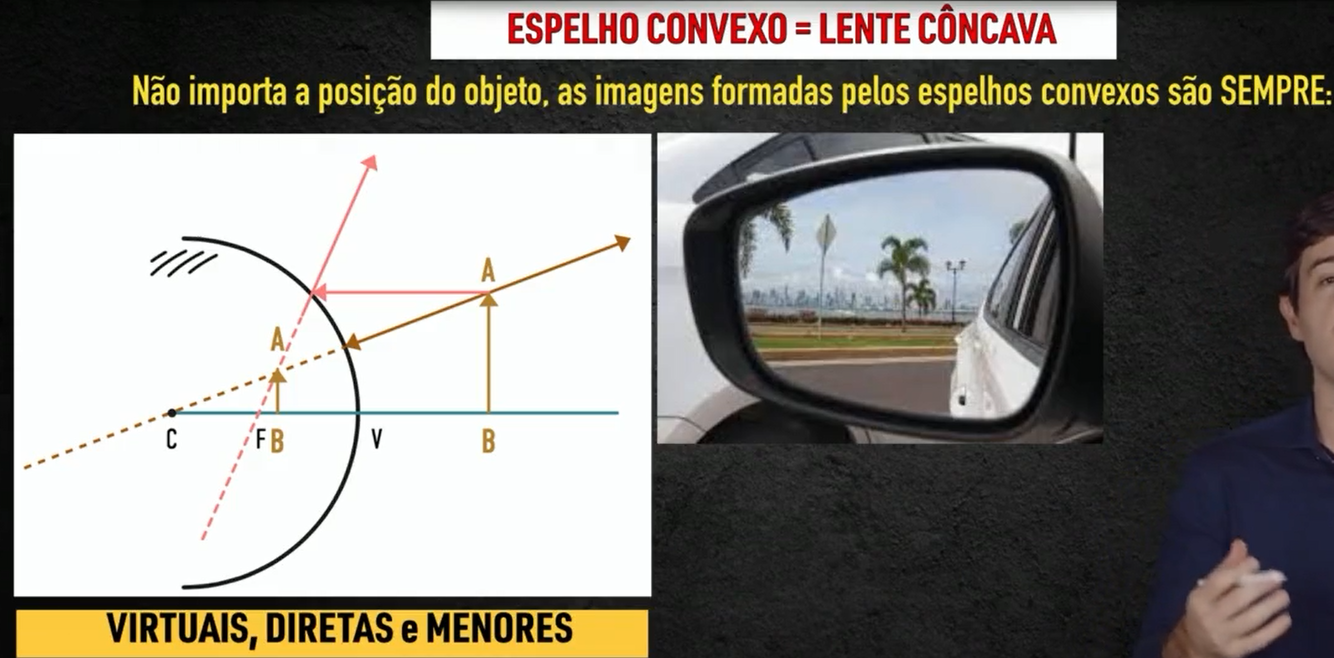 O retrovisor possue semelhança com qual espelho? Imagem formada?