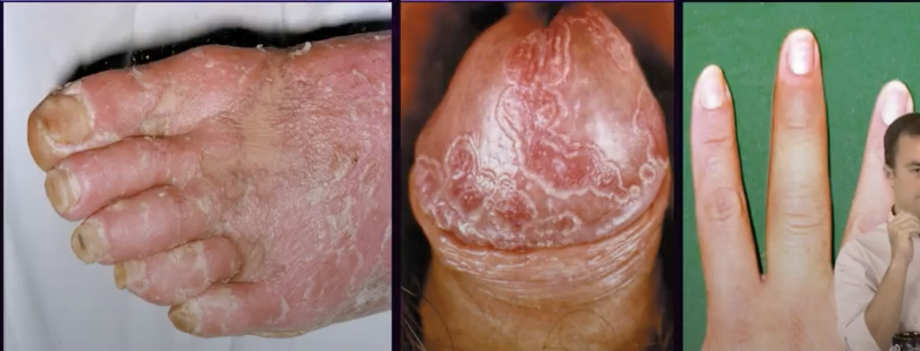 QUAIS SÃO AS LESÕES TÍPICAS QUE ACOMPANHAM A ARTRITE REATIVA ?