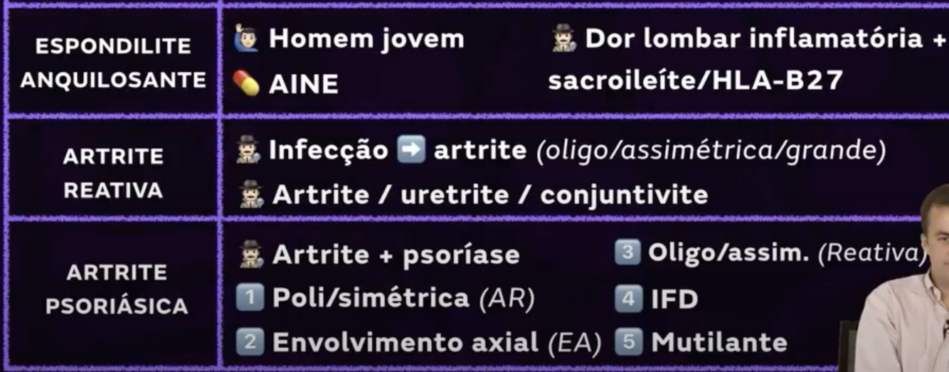 QUAIS OS PRINCIPAIS PONTOS DA ESPONDILITE ANQUILOSANTE, PSORIÁSICA E REATIVA?